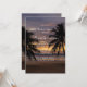 Eine atemberaubende Sonnenuntergangsszene mit einem goldenen und lila Himmel, ruhigen Meereswellen und einer schwarzen Silhouette einer Palme auf der rechten Seite. Die warmen Farbtöne reflektieren das Wasser und schaffen eine romantische und ruhige Atmosphäre - ideal für eine Hochzeitsreise.
