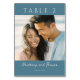 Diese Hochzeitstischkarte verfügt über ein modernes, minimalistisches Design mit einem geteilten Tealhintergrund, der ein zentrales Foto von zwei Personen in einer intimen Pose umrahmt. Das Layout ist sauber und ausgewogen und verwendet eine Kombination aus serifenlosen und eleganten Schriftarten, um die Tischnummer oben und die Namen unter dem Bild hervorzuheben. Die Farbpalette besteht aus beruhigenden Tealtönen, die durch sanfte Farbtöne aus dem Foto ergänzt werden und eine warme und romantische Atmosphäre schaffen, die perfekt für eine Strandhochzeit ist. Der Gesamtstil verbindet Einfachheit mit Sentimentalität und ist daher ideal für Paare, die ihrem besonderen Tag eine persönliche Note verleihen möchten.