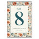 Diese Hochzeitstischkarte verfügt über einen romantischen Blumenrand in Pfirsich-, Creme- und gedämpften Grüntönen, wodurch ein eleganter und verspielter Rahmen entsteht. Das zentrale Design enthält eine fette teal-farbene Zahl "8" mit dem Wort "Tisch" darüber in zarter Schrift, gesetzt vor einem sauberen Hintergrund für ein anspruchsvolles Aussehen. Anpassbare Textfelder ermöglichen eine Personalisierung mit Namen und Datum und machen sie perfekt für die persönliche Note an Ihrem besonderen Tag. Die Kombination aus klassischer Typografie und spielerischen Blumen erweckt Wärme und Feierlichkeit und ist ideal, um die Atmosphäre Ihrer Hochzeitsfeier zu verbessern.