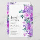 Romantische lila Lavendel-Wild-Blume Frühjahr Sommer-Brautparty mit hübschen wilden Blume in lila , Lavendel und Grün, mit einer gebürsteten Schrift Typografie auf einem eleganten editierbaren weißen Hintergrund.