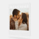 Dieses Hochzeitsschild zeigt ein warmes, intimes Foto von zwei Personen in einer engen Umarmung, gerahmt von fetten Textelementen. Das Design verwendet eine Farbpalette aus weichen Brauntönen und Beigetönen mit goldenen Sonnenlichtakzenten, wodurch eine romantische und einladende Atmosphäre entsteht. Die Typografie umfasst große, einladende "WILLKOMMEN"-Buchstaben oben, elegante Schrift für die Personalisierung und eine klare Serifenschrift für zusätzliche Details. Perfekt zur Feier von Liebe und Einheit, kombiniert dieses Schild fotografischen Realismus mit grafischer Schlichtheit, um Wärme und Feierlichkeit zu vermitteln.