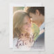 Diese Hochzeit "Save-the-Date"-Karte zeigt ein warmes, intimes Foto von zwei Personen, die einen liebevollen Moment teilen, mit sanft verschwommenem Hintergrund, der eine romantische Atmosphäre schafft. Das Design verwendet eine weiche Farbpalette aus natürlichen Tönen und grünen Andeutungen, verstärkt durch goldenes Licht, das auf einen Sonnenuntergang oder -aufgang hindeutet. Elegante Schrift-Typografie in tiefem Violett hebt "Save the Date" hervor, während saubere Serif-Schriftarten Namen und Ortsdetails präsentieren, die alle harmonisch ausgerichtet sind, um den Fokus auf das zentrale Bild zu behalten. Die Gesamtstimmung ist freudig und erwartungsvoll, perfekt, um Liebe und Verbindlichkeit zu feiern.