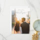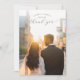Diese Hochzeits-Dankeskarte zeigt eine romantische Szene mit zwei silhouettenhaften Figuren, die Hand in Hand gegen ein Stadt-Sonnenuntergangspanorama laufen und eine warme und intime Atmosphäre schaffen. Das Design verwendet eine goldene und bernsteinfarbene Farbpalette, die durch sanfte Blautöne und Grautöne für Kontrast ergänzt wird, was ihm ein zeitgenössisches, aber zeitloses Gefühl verleiht. Elegante Schriftarten und Druckschriften fügen Raffinesse hinzu, während der Ausdruck "Danke" elegant in fließender Schreibschrift geschrieben ist und Dankbarkeit und Zuneigung vermittelt. Perfekt, um herzlichen Dank nach Ihrem besonderen Tag auszudrücken, kombiniert diese Karte künstlerische Fotografie mit digitaler Nachbearbeitung, um einen träumerischen, ruhigen Moment einzufangen.