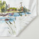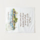 Tapisserie mit inspirierender Zitatschrift zeigt eine einfache Aquarelllandschaft mit einem Haus am See mit Bäumen und Meeresgras. Es zeigt eine ermutigende Christliche Bibelverse Römer 15:13, "Möge der GOTT DER HOFFNUNG euch alle Freude und FRIEDEN geben, wie ihr Ihn vertraut."