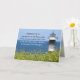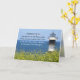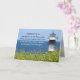 Auf der inspirierenden Grußkarte steht ein Schwarz-Weiß-Leuchtturm mit hübschen gelben Blumen und blauem Ozean- und Himmelshintergrund. Die Römer der Bibel Verse 15:13: "Möge der Gott der Hoffnung euch mit aller Freude und Ruhe erfüllen, so wie ihr ihm vertraut, damit ihr vom Power des Heiligen Geistes hoffnungslos überflutet."