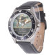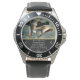 Herrenuhr aus Edelstahl mit schwarzem Lederarmband