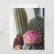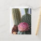 Ein hellrosa blühender Kakteen Pop aus dieser Postkarte, mit Bibelkomödien Romans 8:37.