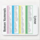 Diese Mausunterlage hat die Nr. 1 bis 100 aufgelistet in Rom-Ziffern. Die regelmäßigen Zahlen sind in den farbigen Spalten, und die römischen Ziffern sind auf der rechten Seite jeder Spalte. Zu dem links ist das Wort "römische Ziffern" und rechts ist, wo Sie die Namens"Lynne" ändern können und Ihren Namen zu addieren oder Sie abzufassen dort haben möchte.
