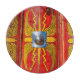Rot dekoriert römisches Empire Militär Schilde in einer Reihe und der Text INVINCIBLE auf T - Shirt. Drucke und Geschenke für Spaß und gute Laune.