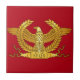 Ein römischer goldener Adler auf einem roten Hintergrund des Legionary, gewunden im Sieg und in Lager Thunderbolts. SPQR.