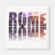 Rom Text bestehend aus Kolosseum auf schwarzem Hintergrund mit Text Reflektion in Wasser.