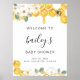 Dieses Babyduschenwillkommenzeichen mit gelben Blumen, Wabenrüben und Hummeln in Aquarellen. Alle Texte können bearbeitet werden.
