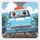 Ron & HARRY POTTER™ in Flying Car to HOGWARTS™ Quadratischer Aufkleber