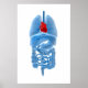 Röntgenbild der inneren Organe mit rot hervorgehobenem Herz.