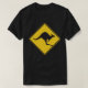 Ein gelbes Kängurukreuzschild auf einem Shirt.