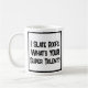 Ein lustiger Slogan auf einer Tasse, die sagt: "Ich schiebe Roofs. Was ist DEIN super Talent?" Tasse für einen Roofer. Schwarzweißtext.