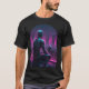 Immerse yourself in the profound solitude of the future with our "Rooftop Android City Gaze Tee." This captivating design features a humanoid android, its metallic skin gleaming with reflections of neon lights, as it sits thoughtfully on a rain-slicked rooftop. Gazing at a distant, glowing city under soft falling rain, the android conveys an emotionless yet deeply contemplative expression. The artwork masterfully blends retro-futuristic aesthetics with 80s tech elements and a dark, cinematic tone. Dominated by a cool magenta-blue palette, the detailed textures and mood-heavy lighting create a powerful visual narrative. This minimalist yet impactful composition is perfectly centered for apparel printing, embodying a unique retro sci-fi art style. It's an ideal choice for enthusiasts of cyberpunk, synthwave, futuristic art, or anyone who appreciates a design that sparks introspection and showcases the beauty of a melancholic future.