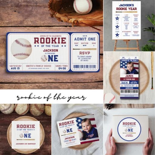 Rookie Jahr 1. Geburtstag Baseball Ticket FOTO Einladung