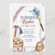 Diese editierbare digitale Einladung enthält wasserfarbene Illustrationen eines Baseballschlägers, einer Mütze, eines Jerseys und eines Handschuhs und kombiniert klassischen Americana-Charme mit einer modernen Note.