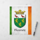 Wappen der Rooney-Familie auf dem Hintergrund der irischen Flagge