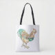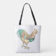 Die Tasche ist auf beiden Seiten mit bunten Hahn-Kunst bedruckt.