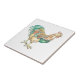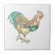 Farbige Abbildung eines Hahn, inspiriert von einem Vintagen bestickten Stoff auf dekorativen Fliesen / Trivets. Copyright Dominic A. White.