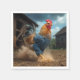 Ein stolzierender Hahn stolpert selbstbewusst, während er in einem staubigen Bauernhof Jeans in Denim Blue trägt