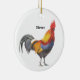 A color pencil drawing of a colorful Rooster adorns this customizable ornament! Change the text as you wish!