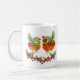 Farbenfroher Hahn mit Henne, grünen Blätter und roten Vincenzerbeeren, Petrykivka Malerei im ukrainischen Stil