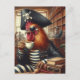 Rooster Pirate mit Kaffee in einem Buchladen Postkarte