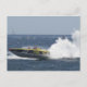 Großartiger Roster-Schwanz von Spray von einem Offshore-Motorbootsporter.