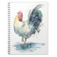 Rooster Splash I von Melissa Wang. Ein Aquarellhahn, der mit verschiedenen Farben seitlich gedreht wurde.