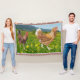 Dies ist die zweite von drei Varianten einer farbenfrohen Wurfdecke, die einen Atem der Landschaft in Ihre Zuhause bringen wird. Es zeigt einen knöcheligen Cockerel, der leidenschaftlich auf eine Henne zusteuert, die den Schwanz abgewandt und weggelaufen ist, auf einer Wiese im Frühling, die ich in Frankreich gepunktet und skizziert habe. Ideal, um jedes Zimmer aufzuräumen.