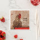 Rooster Vintag Farm Living Skript Handwerk Entcoupage Papier Servietten. Hähnchen im antiken Landstil, altmodisches Bauernhaus mit inspirierter Textur und Typografie. Wohngestaltung des roten braunen Geflügeldesigns. Bildrecht Marg Seregelyi Fotografie.