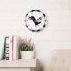 Rooster with Black White Check Große Wanduhr