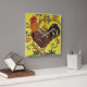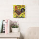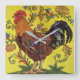 Rooster Yellow Chicken Folklotze Blütenblume Quadratische Wanduhr