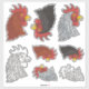 Rot, Schwarz und Grau-Hahn's Kopf Icon Aufkleber Set.