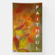 Textured warmth and radiant leaves frame the word “FAITHFUL,” offering a visual meditation on spiritual resilience and grace.