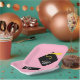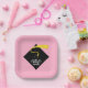 Creative Graduation Party oder Event Teller für die Klasse der '25 Klassen mit lustigen Linien und klassischen schwarzen Graduation Cap mit Gold tassel auf rosa Hintergrund.