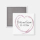 Pink Abstrakte Heart Wedding Magnet mit den persönlichen Namen der Braut und des Bräutigams und dem genauen Datum der Ehe anpassen. Erstellen Sie ein zeitgenössisches personalisierte, das den Datums-Magneten behalte, halten Sie das Hochzeitsgeschenk für Neuvermählte, Brautmädchen oder Trauzeugen. Geeignet auch als Gastgeschenk Hochzeit oder Brautparty Gastgeschenk. Dieser hübsche und moderne romantische Hochzeitsquadrat zeichnet sich durch ein digital kreiertes abstraktes rosa Fraktal Herzdesign mit weißem Hintergrund aus.