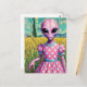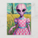 Rosa Alien in einem Polka Dotdress im Weizenfeld Postkarte