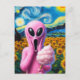Rosa Alien mit Cotton Candy Sunflowers Postkarte