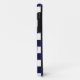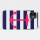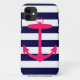 Eine helle, neonrosa Silhouette eines Ankeres befindet sich auf einem marineblau-weiß gestreiften Hintergrund. Ein lustiges, nautisches Design.