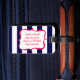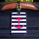 Eine helle, rosa NeonSilhouette eines Ankers ist auf einem Marineblau- und weißengestreiften Hintergrund. Ein Spaß, Seeentwurf, der heraus steht.