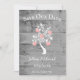 Personalisieren Sie eine einmalige Hochzeitsankündigung mit einem rosa Herzbaum Save the Date. Das Design der Ankündigung ist aus grauem Holz mit einem Baum mit blühenden Herzen an seinen Zweigen und Text, den Sie mit Ihren Hochzeitstermin Details. Zusätzliche Ankündigung Datum freihalten für dieses Design in verschiedenen Farben verfügbar.