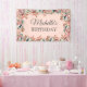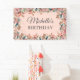Elegantes botanisches Rosa und aquamarine Aquarellblüte und Blätter Garten-Thema Geburtstagsbanner für Frauen, die mit ihrem Namen und Alter. Schön für eine Feier zu jeder Jahreszeit, aber perfekt geeignet für den Herbst.