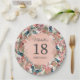 Elegantes botanisches Rosa und aquamarine Aquarellblumen und Blätter Garten-Thema 18. Geburtstag Party Papier Teller für Frauen mit ihren Namen und Alter angepasst. Schön für eine Feier zu jeder Jahreszeit, aber perfekt geeignet für den Herbst. Text, Schriftart, Schriftart und Farbe sind vollständig anpassbar. Passen Sie diese Papierplatte für jedes Alter an.