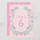 Diese böhmischen Hochzeitsfeiern sind von zeitloser Eleganz geprägt und verfügen über einen zarten Blumenkranz mit rosa und aquamarinen grünen Blume. Das Design wird durch einen schlichten, minimalistischen rosa Text ergänzt, der der Dekoration eine Touch Eleganz verleiht. Entdecken Sie unsere Kollektion für mehr böhmisch-inspirierte Tischnummern, die Stil und Anmut nahtlos in Ihre Hochzeitsfeier einbinden.