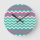 Rosa, aquamarine und weiße Zickzacke Runde Wanduhr