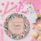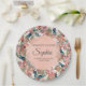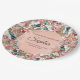 Elegantes botanisches Rosa und aquamarine Aquarellblumen und Blätter Garten-Thema Graduation Party Teller für Mädchen maßgeschneidert mit ihrem Namen, Schulname und Abschluss Jahr.